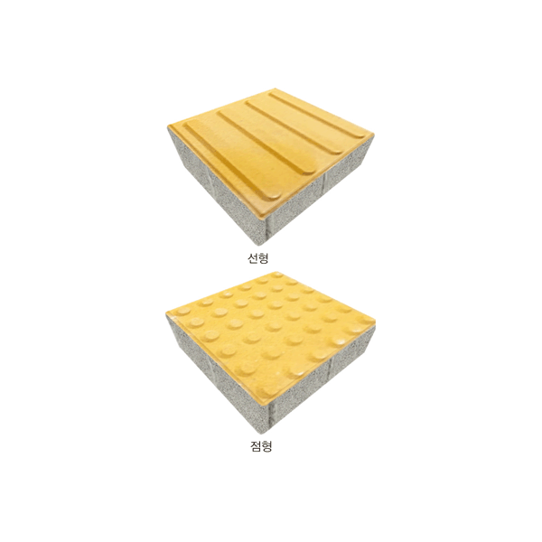 목록 안전유도블록 (T60, 선형/점형) 구분 선형/점형 사이즈(가로x세로x높이) 300x300x60 수량(1㎡/1파렛트) 11장/144장(13.1㎡) 적재물량(25톤) 15파렛트(196.6㎡) 투수/불투수 - 무게/장 12kg/장 식별번호 - 카카오톡 문의 1:1 문의 제품상세 [ 제품특성 ] 보행 약자인 시각 장애우의 보행을 안전하게 유도하기 위한 블록시력이 약한 사람을 위해 시인성이 뛰어난 노란색으로 제작· 선형 블록 : 보행자가 지팡이를 대고 일직선으로 이동하도록 유도하는 기능· 점형 블록 : 보행자가 돌기를 밟았을 때, 진행 방향이 변환되는 위치임을 알려주는 기능[ 제품색상 및 제품보유기능 ] [ 제품보유기능 설명 ] [ 도면 ][ 기본제원 ] 목록